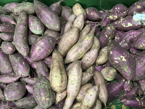今、芋掘りが最盛期を迎えました。この写真も右から、紅はるか、安納芋、なると金時芋です。私は安納芋の焼き芋が大好きす。細いのを選んで焼きます。焼いている途中、蜜が出てき、皮ごと食べてしまいます。本当においしいです。
