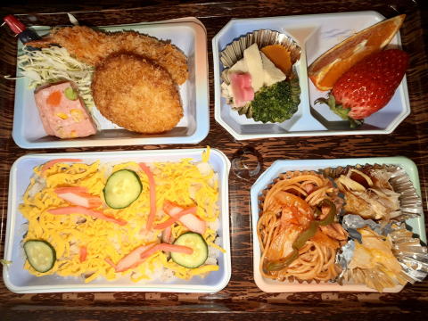 お子様にも特別なお子様が好きそうなメニューを作らさせていただいています。値段はご希望の応じさせていただきます この日のメニューは当店自慢の40年以上も揚げ続けているコロッケ、海老フライ、ハム、コールスロー、イタリアンスバゲティー、エビマヨ、たこ焼き、(高野豆腐、梅麩、カボチャ、プロコリー各含め煮)あき姫苺、ポンカン、ちらし寿司