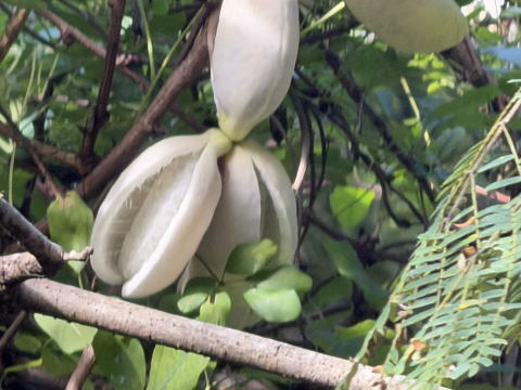 右の写真は以前紹介したアケビです。大変タイミングよくきれいに撮れたものですから、掲載しました。中に白い綿みたいな部分を食べるのですが、とても甘いです。私の小さい頃は、松茸を採りに行くときこれが目当てで行きました。皮はきんぴらにして食べられます。