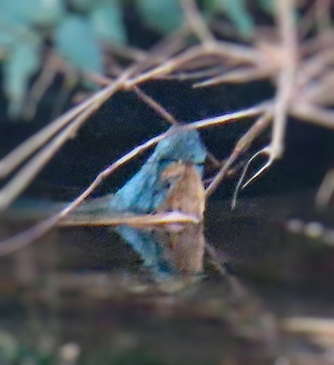 右の写真は川の中のカワセミですが、ちょっとぼやけていますが、川の中のカワセミはなかなか見ることが出来ません。川に映るカワセミも珍しいです。これはかなり離れているところから撮っています。
