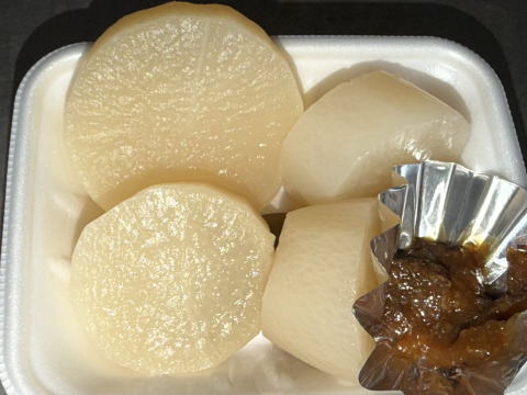 惣菜には、朝倉山椒味噌を入れています。朝倉山椒味噌は、ふろふき大根と相性がよく、おいしくなります。