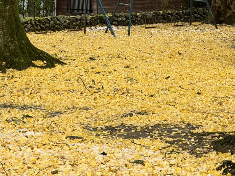 境内を掃除する人も大変だと思います。これだけ落ち葉が積もれば。