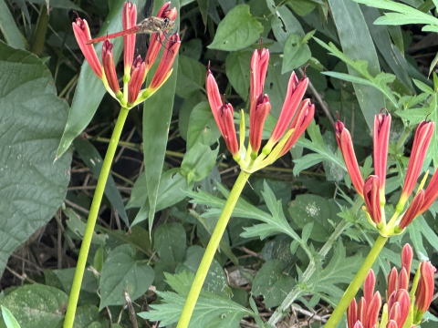 昨年も遅かったんですが、マンジュシャゲが咲き出しました。 この花が咲くと彼岸が来たという感じがしますね。今調べているんですが、20年頃は10日頃に咲いており、やはり暑さかなと思います。たまたま赤とんぼが止まっており、一緒に撮りました。