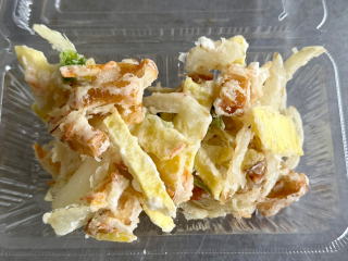 ・かき揚げです。サクサクとしてとてもおいしいです。ウスターソースとの相性が抜群です。丼も最高です。 | ![]() |