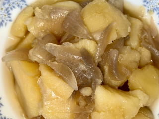 ・キタアカリ、赤タマネギを使ったとっても素朴な煮物です。キタアカリのほくほく感が最高です。 |