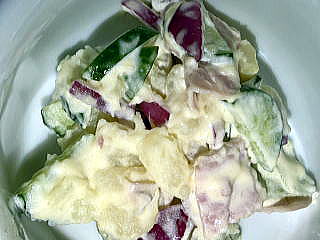 ・ボテトサラダです。ジャガイモのおいしさとキュウリや赤タマネギのおいしさがよくわかるサラダです | ![]() |